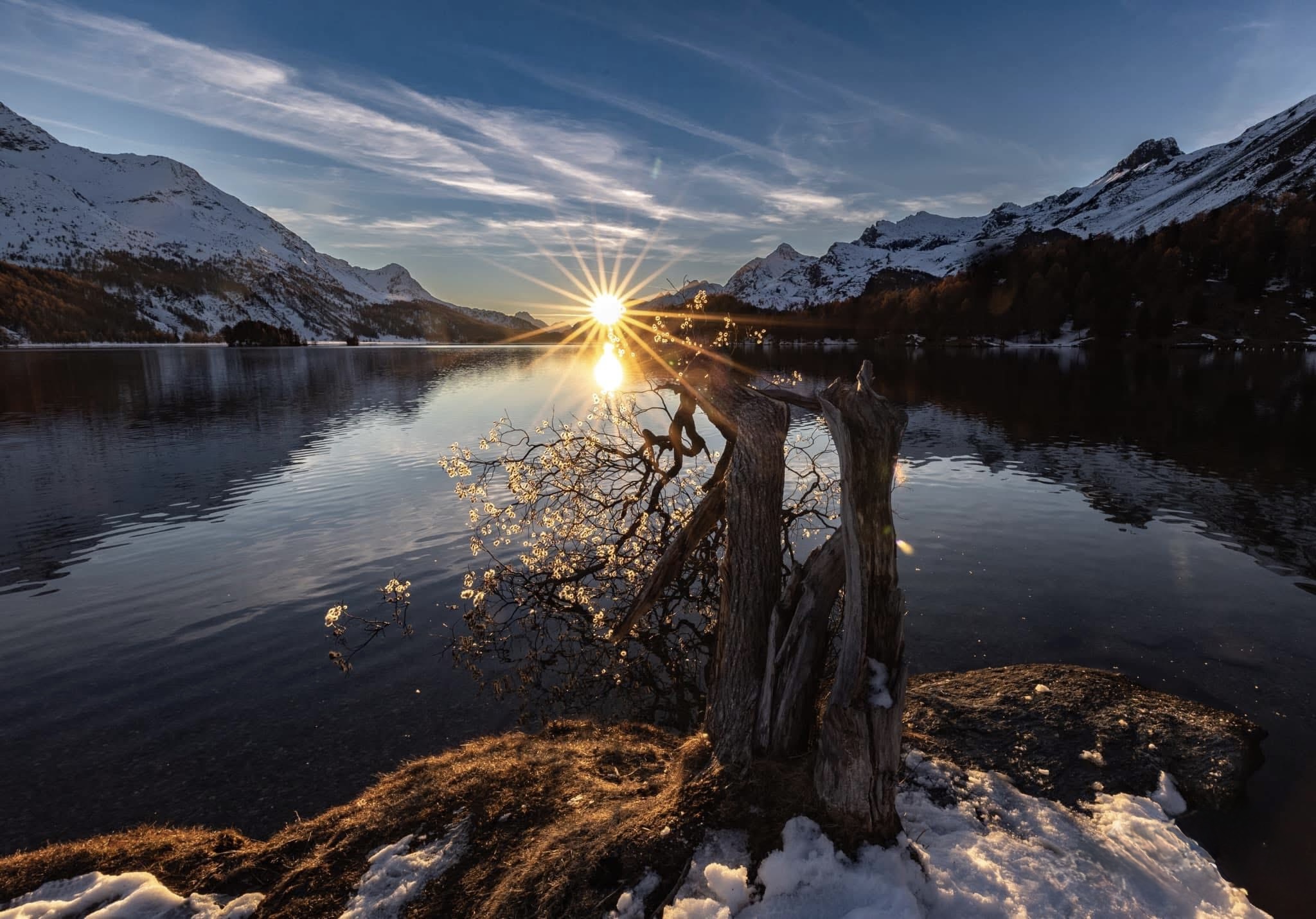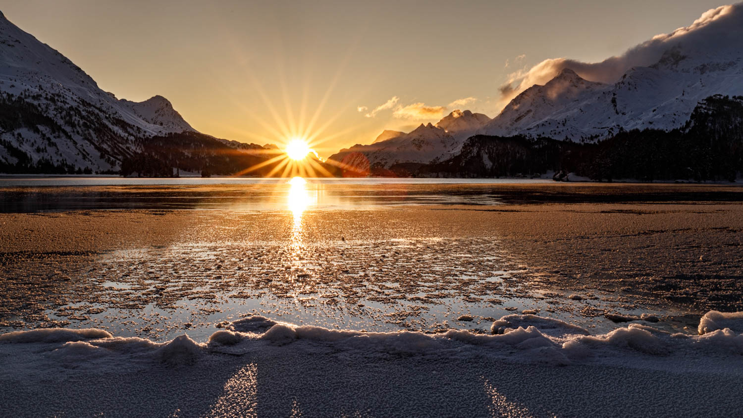 Ein Sonnenstern (auch Blendenstern genannt) verleiht Landschaftsaufnahmen einen besonderen Akzent. Er entsteht durch die Beugung des Lichts an den Blendenlamellen deines Objektivs.